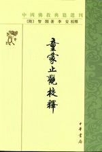 本書は、《中国仏教典籍選刊》の一つ。仏教天台宗の創始者智顗(538-597)が天台宗の二大根本教義及び修行方法を綴った《童蒙止観》(《修習止観座禅法要》とも)の校釈本。「具縁」「訶欲」「棄蓋」「調和」「方便」「正修」「善発」「覚魔」「治病」「証果」の10章に分け、修禅と覚悟について論述。伝統気功と相通する部分もあるので、気功の学習における参考価値も高い。金陵刻経処本を底本に校釈する。