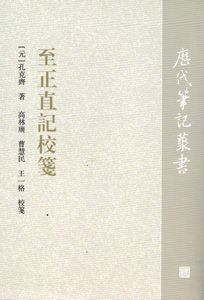 『至正直記』(『静斎至正直記』『静斎類稿』とも)は全4巻、元末の孔克斉(孔子55世の子孫)撰。元代社会の故事典章や、文学芸術に対する著者の論及など、正史には見られない貴重な記録を多く記録している。本書は裴松之『三国志注』に倣い、関連資料や文学記述などを引いて『至正直記』を整理校勘し、内容を一部補充する。巻末に、趙孟頫『宮里譜系序』、帰有光『静斎類稿引』、兪正燮序四則、四庫全書総目「至正直記提要」の諸篇を附録として収める。縦組繁体字。